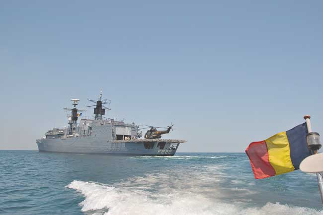 Corveta ”Contraamiral Horia Macellariu” desfăşoară, joi, o serie de exerciţii pe mare, în comun cu două vedete rapide de patrulare ale Ucrainei, în raioane maritime din proximitatea gurilor Dunării şi a Insulei Şerpilor.